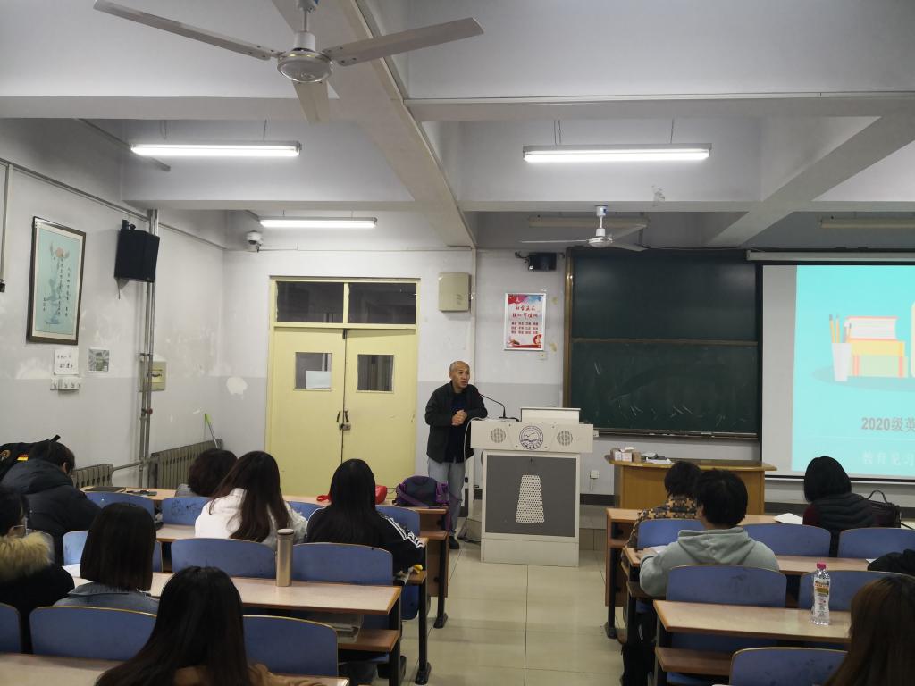 2021年11月15日8:30,Beat365中文官方网站在综合楼118召开了2020级英语专业教育见习动员大会。Beat365中文官方网站崔海英院长、罗学锋副院长、范学荣副院长、英语教学部主任王静、宋洁、部分指导教师以及2020级131位同学参加了本次大会。