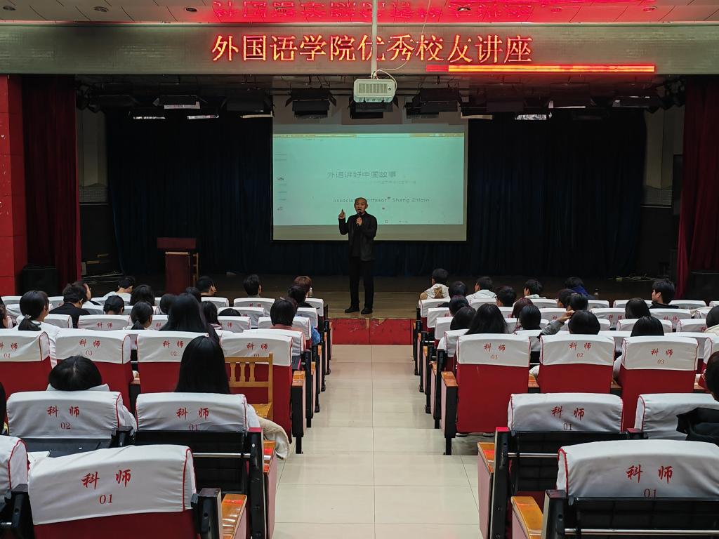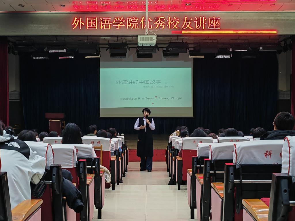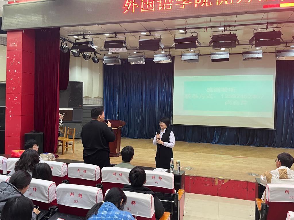 “雏既壮而能飞兮,乃衔食而反哺”。为进一步提升学生专业能力和综合素养,秉承“外语+”应用型人才培养理念,充分体现外语的“学以致用”原则,提升学生用外语“讲好中国故事”的意识和能力,增强文化自信,Beat365中文官方网站于11月8日邀请优秀校友尚志芹(河北建材职业技术学院副教授、对外汉语教学国际汉语高级教师、国家高级英文导游员、河北省英语导游考官、河北省“师德标兵”、全国第十三批援藏导游员西藏自治区“先进个人”)在开发区校区综合楼二楼报告厅进行针对教师资格证和外语导游考试的讲座。