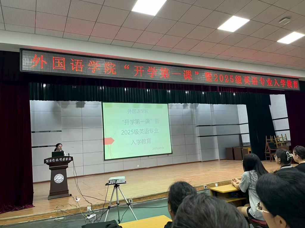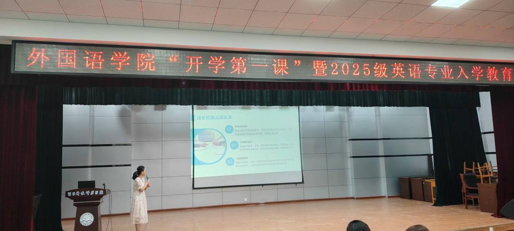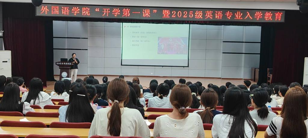 2025年9月3日,Beat365中文官方网站在秦皇岛校区多功能厅成功举办“开学第一课”暨2025级英语专业入学教育,2025级新生及英语专业骨干教师与会。