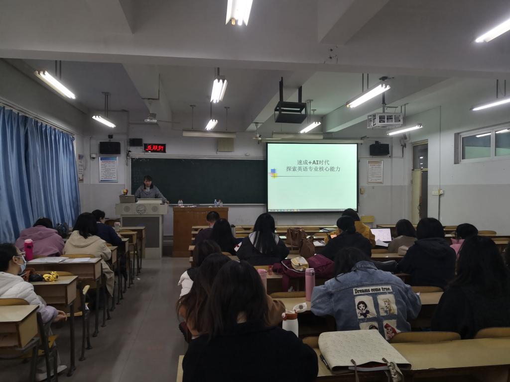 张杨老师以“速成+AI 时代探索英语专业核心能力”为主题,剖析了人工智能浪潮下英语专业学生核心能力的培养路径。她强调,在信息爆炸与技术迭代的时代,批判性思维能力是英语专业学生的“立身之本”。教师需通过问题驱动式教学、学术辩论、多源信息对比分析等活动,引导学生突破“信息茧房”,学会理性思辨、自主探究。此外,她还结合 AI 工具的应用场景,介绍了“人机协同”的能力培养模式——让学生既掌握 AI 辅助语言学习、文本分析的技能,又保持人类独有的情感洞察、文化共情能力,从而在未来职场中具备不可替代的竞争力。