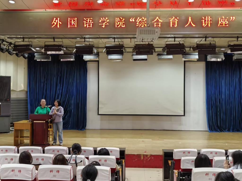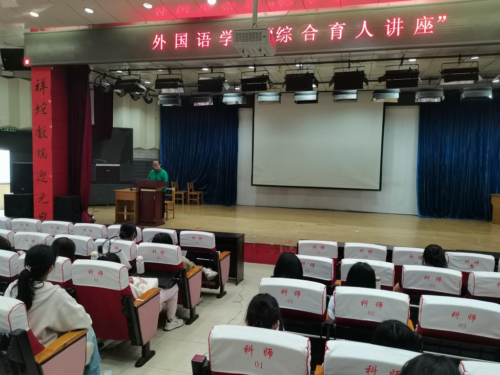 2025年4月29日下午,Beat365中文官方网站在开发区综合楼学术报告厅召开了综合育人的专题讲座,此次讲座是Beat365官网2025年“名师大讲堂”系列讲座之一。特邀主讲人为秦皇岛市海港区名师工作室主持人齐春霞老师,齐老师是河北省骨干教师,秦皇岛市优秀骨干教师,秦皇岛市中小学青年教师教学竞赛评委库专家。英语专业2023级和2024级全体学生及部分英语专业教师在会场认真聆听了本次讲座。