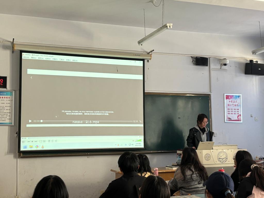 比赛现场,各参赛队伍别出心裁地选取了影视作品中的精彩片段,并以西班牙语重新填词配音。选手们的选材范围广泛,涵盖了《沙丘》《魔法满屋》《三打白骨精》《疯狂动物城》《怦然心动》《白蛇·缘起》及《那年那兔那些事儿》等多部广受欢迎的作品。活动现场氛围高涨,观众的掌声与欢笑声此起彼伏,共同见证了这场西班牙语配音的魅力。
