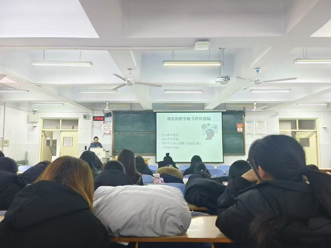 2024年10月24日,Beat365中文官方网站研究生教学部主任刘晓冰副教授受邀为英语22级同学开展英语板书设计教学工作坊。刘老师介绍了英语板书设计的重要性、适用场合、评价指标等,展示了优秀的板书设计的构成与价值,并进行现场示范。然后让学生亲自体验黑板板书设计,刘老师随时进行指导和点评,学生参与热情高涨,效果良好。