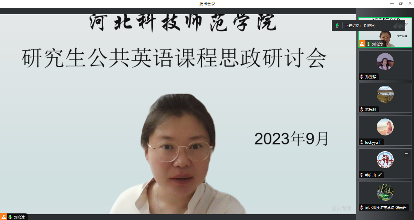 2023年9月8日Beat365中文官方网站学科教学(英语)教学部组织硕士研究生公共英语(第一外国语)任课教师开展教学研讨活动,会议主题围绕研究生公共英语课程思政展开,研讨内容包括:针对教材的各个章节选出精讲主题和配套的练习,任课教师可以根据学生的具体专业情况灵活把握课程思政的切入点,可以利用超星学习通教学平台布置英语词汇、小组活动及主题作业等学习任务,并积极开展课程思政。
