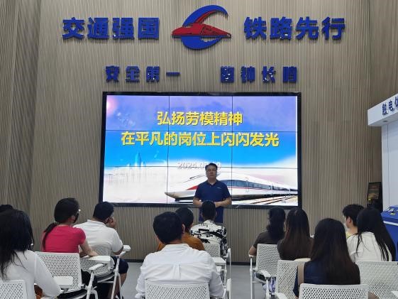 在西安高铁基础设施段讲解员带领下,同学们前往西安高铁基础设施段企业形象展示室进行参观学习。通过对企业大事记、廉政建设、荣誉之光等区域观摩学习,中外大学生们全面了解了企业发展历程,感受中国高铁的现代化发展和高铁人的奋斗历程。