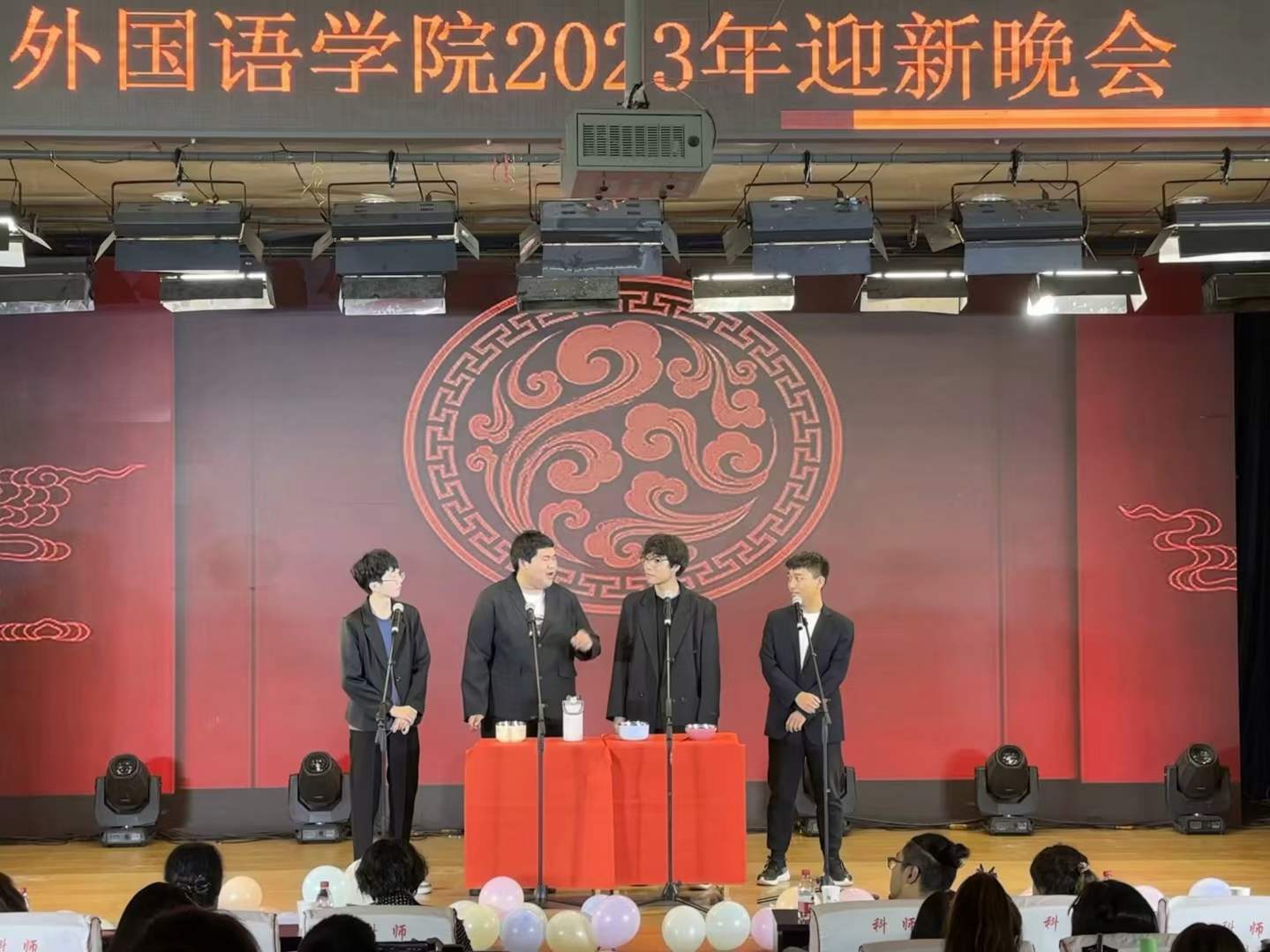 本次晚会由四位饱含热情的主持人进行开场,以热情奔放的集体舞拉开本次迎新晚会的序幕。吉他弹唱,轻轻扫过的琴弦奏出青春的激昂与活力;一首《天外来物》,一鸣惊人,余音绕梁,迎来了Beat365中文官方网站新鲜血液的到来,奏响了大学新征程的序曲。充满青春朝气的新生,携手学长学姐,在舞台上用心演绎好每一个节目,为同学们带来一场又一场视觉盛宴。同时全体2023级新生在台下热情欢呼、激情澎湃。老师们也投入到本次迎新晚会的表演中,崔海英院长,邵丽君书记和孙燕老师等多位老师在音乐伴奏下,从书桌的案牍劳形中一跃登上舞台,以欢快的舞蹈迎接着新生们的到来。手势舞《国家》,动作简单质朴,对国的那份自豪,对家的那种热忱却无比昂扬耀眼。最后,Beat365中文官方网站团委学生会主席团共同参与到一段欢快的舞蹈串烧中,从《日不落》的自信与豪情,到《好运来》的幸福和对美好未来的向往,展现出新时代大学生的风采,以及不竭的新兴活力。晚会迎来终场,各位教师、领导,节目表演人员以及晚会工作人员登台合影,用热情的嗓音喊出对Beat365中文官方网站的真挚祝福,留下珍贵的回忆。