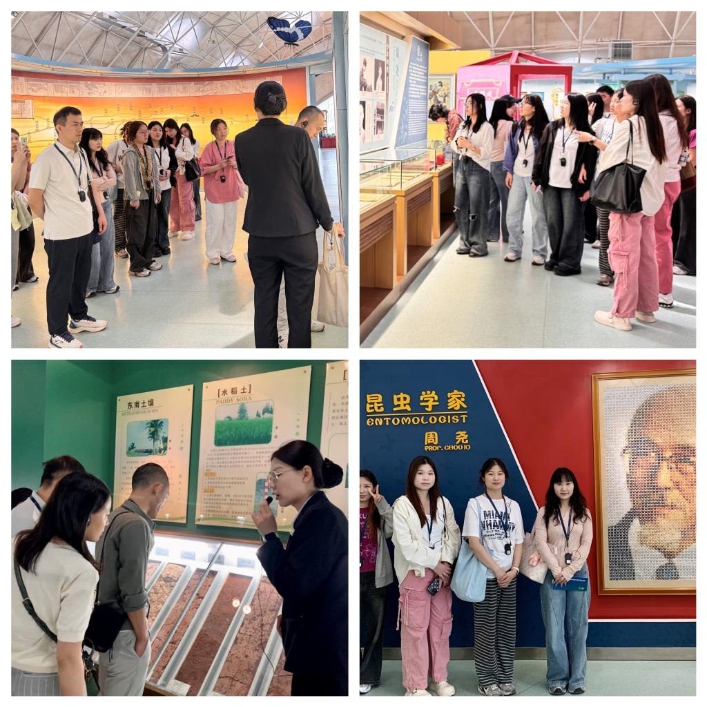 在昆虫博物馆,师生们了解了昆虫的多样性、生态习性及其与人类社会的密切联系,并学习了我国著名昆虫学家周尧先生的科学精神与卓越贡献;在中国农业历史博物馆,大家系统认识了我国农业文明的发展脉络,包括农具演变、水利建设及丝绸之路带来的农耕文化交流,深刻体会到“农为邦之本,民以食为天”的历史智慧;在于右任教育思想纪念馆,则感受到于右任先生以德育人、教育救国的教育理念和实践追求。植物、土壤与动物博物馆的参观,进一步提高了师生们对自然生命体系的认知、加深了对人与自然关系的理解,增强了生态保护意识。在实践学习过程中,带队老师结合各自的研究专长谈了对生态文明建设丰富内涵的理解。