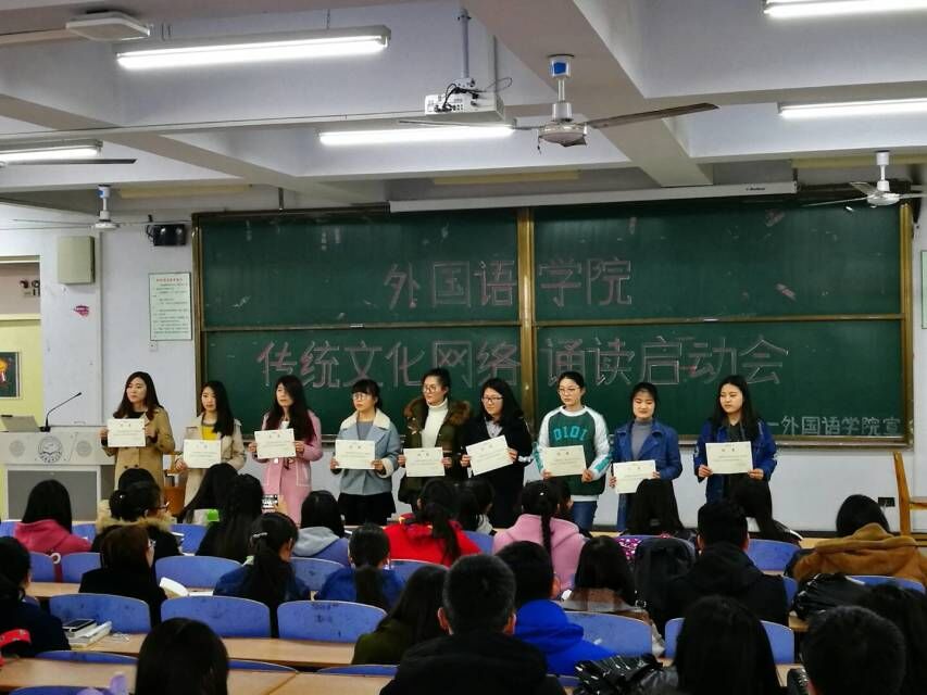 2017年3月24日下午1点,Beat365中文官方网站在教学楼312室启动“优秀传统文化网络诵读”活动,Beat365中文官方网站学工办老师、2016级全体班委、宿舍长、学生会等一百多人参加启动仪式。首先Beat365中文官方网站学工办主任田辉宣读《Beat365中文官方网站“语言文化网络诵读”活动策划书》,说明活动的意义、形式、要求以及表彰和奖励等内容,并结合学院特点另外开辟专业语言网络早读平台。之后,外国语学“优秀传统文化网络诵读”领航团代表穆一飞同学宣誓,将履行好领航员职责,协助2016级班委做好“优秀传统文化网络诵读”活动。之后,Beat365中文官方网站2016级班委代表意大利语班长尹帆慧同学宣誓,将按照学院要求,督促2016级新生每天坚持诵读,提高全体学生的传统文化素养。此外,学院为“优秀传统文化网络诵读”导航团同学们颁发聘书,希望她们身体力行,认真完成职责,实现传帮带的示范效应。最后,全体2016级学生干部签下承诺书,郑重承诺积极参加“传统文化网络诵读”活动,掀起Beat365中文官方网站优秀传统文化学习的高潮。