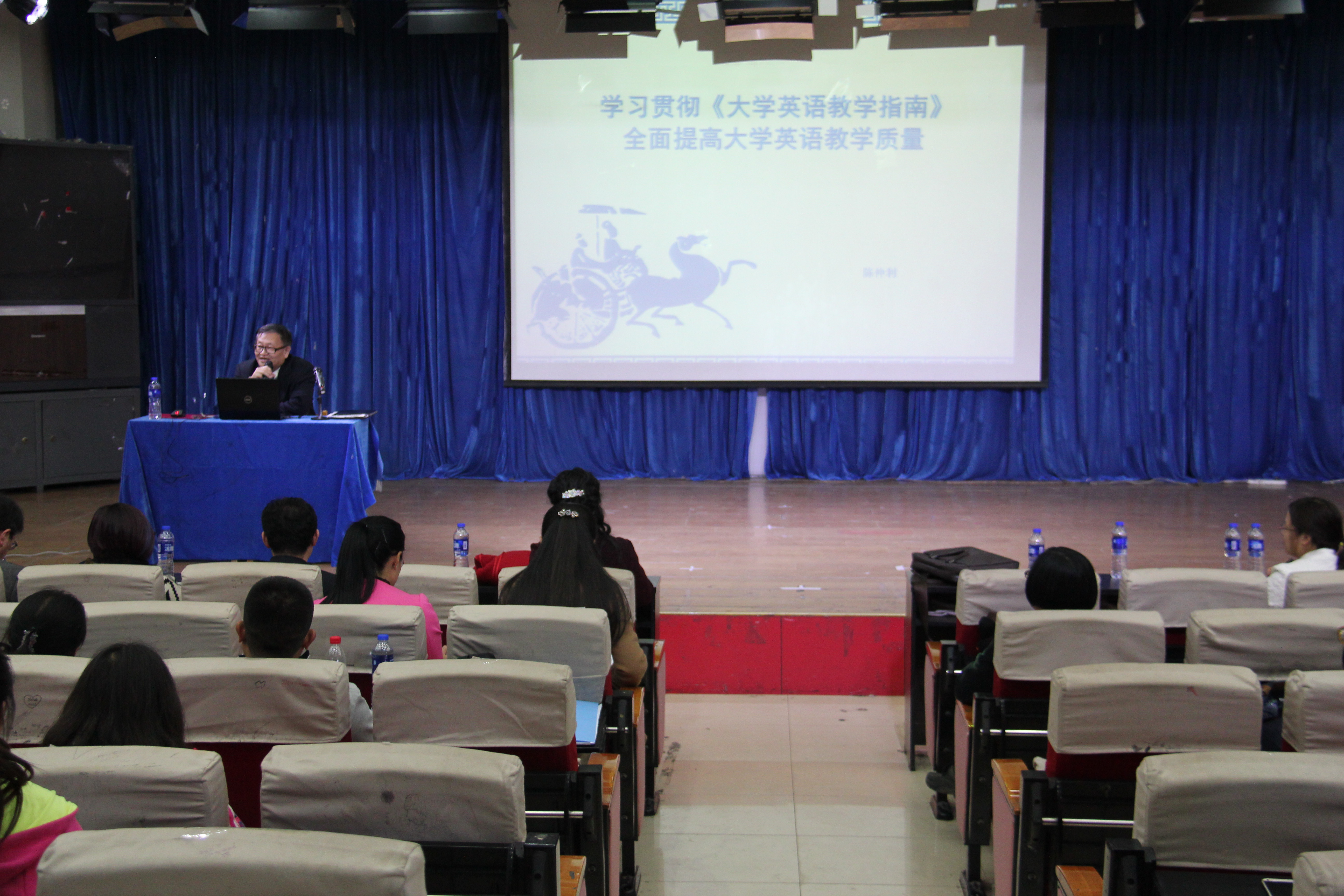 2016年4月14日下午,Beat365中文官方网站邀请教育部高等学校大学外语教学指导委员会副主任,全国大学英语四、级考试委员会委员,全国独立学院外语教学协作委员会主任陈仲利教授来Beat365官网作题为“学习贯彻大学英语教学指南,全面提高大学英语教学质量”的报告。东北大学秦皇岛分校、东北石油大学秦皇岛分校、环保学院、建材学院等秦皇岛各高校英语教学负责人和教师参加了此次报告会。