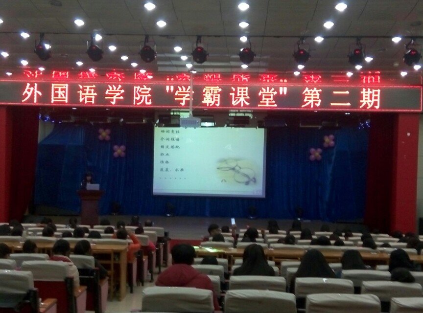 首先有范群英书记宣读第二期“学霸课堂”的特聘学生讲师,并给学生颁发聘书。之后五名学生讲师登台讲课。12级意大利语学生胡芳园分享了在意大利求学经历,12级英语专业学生杨心如的演讲以“学英语没有捷径”为题为新生讲解如何从听说读写译五个方面把握英语的学习。随后,12级英语专业学生、开发区校区学生会主席毕军演讲了“大学里的二三事”,结合自身的体会分享了成绩与能力的关系,大学生要做好规划。之后,15级英语接本班班长李伟丽讲述专接本的奋斗时光,13级应用英语专业学生边中奇讲述两年的学习生活,自己学会独立和感恩。总之,五位学生讲师的演讲各有各的特色,让在场的15级新生们受益匪浅。通过“学霸课堂”,同学们不仅了解了“学霸”的学习方法和生活工作技巧,同时也看到了自己努力奋斗的前景和榜样。