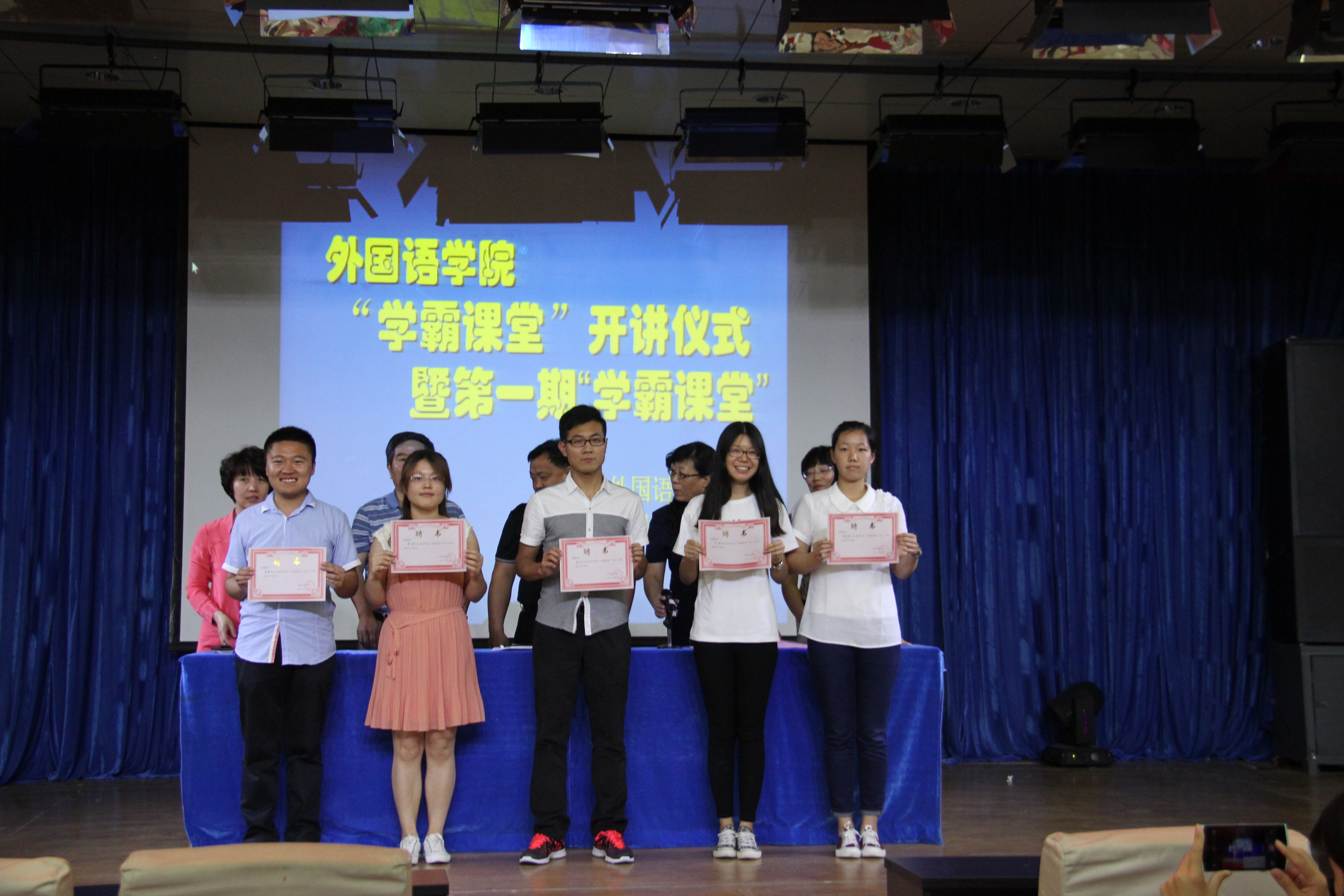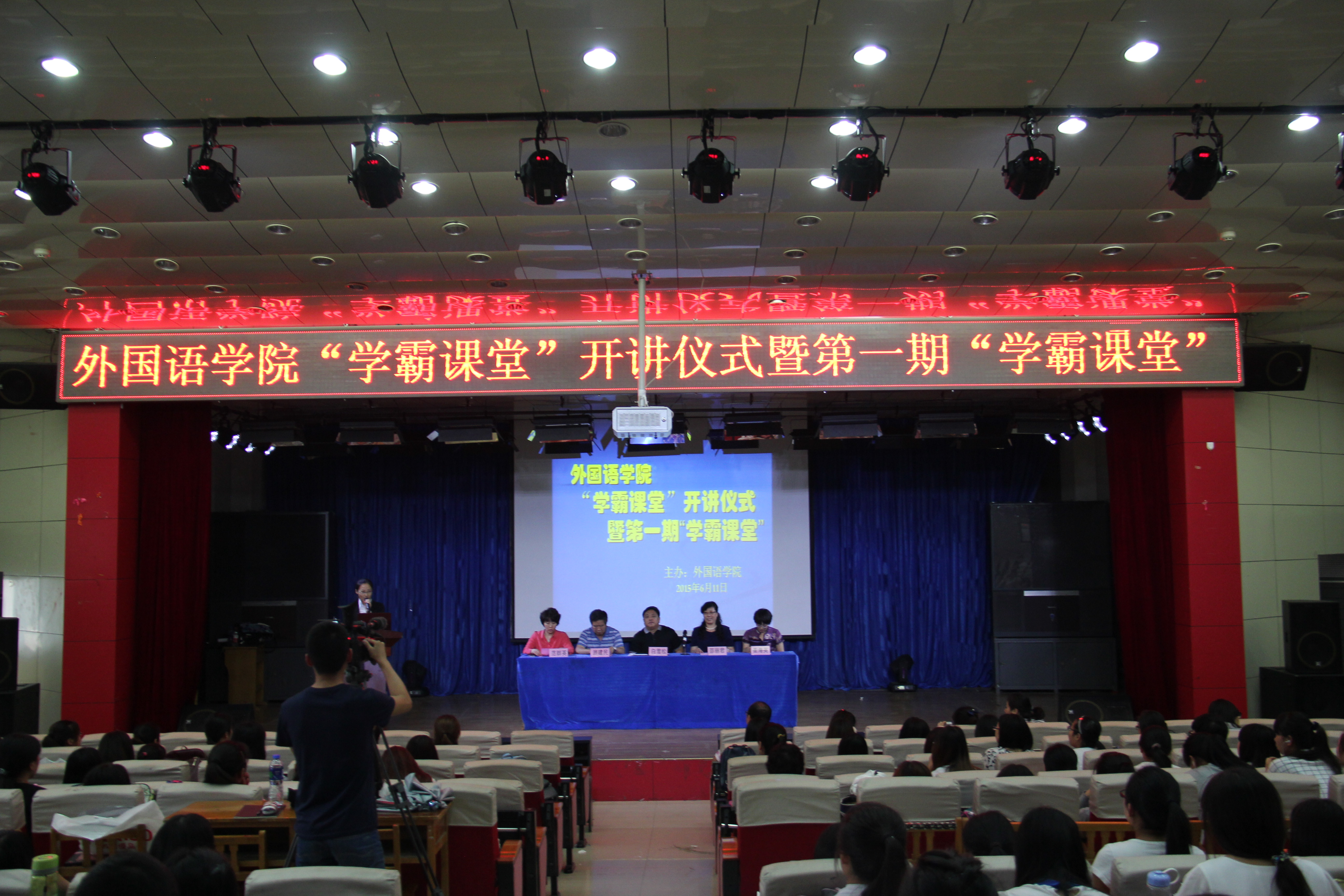 2015年6月11日下午2:30,Beat365中文官方网站在开发区校区学术报告厅举办了 “学霸课堂”开讲仪式暨第一期学霸课堂活动。Beat365中文官方网站党委书记白雪松,院长邵丽君,副书记副院长范群英,副院长游建民,副院长崔海英出席了此次活动。学院200多名学生参加了“学霸课堂”活动。