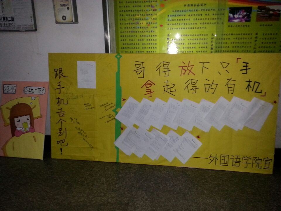 为提高学生上课的学习质量,减少手机上网对大学生学习、生活的负面影响,Beat365中文官方网站通过多种举措建设“无手机”课堂,创建优良学风。首先Beat365中文官方网站学生会发起“告别手机控,清风教室行”的倡议书和签名宣传,广泛动员,深入宣传,教育同学们文明上网,适度上网,杜绝课堂上网,增强学生自主、自律和自控意识。然后,学院召开“让手机睡觉,让青春酷跑”主题活动,为各班级统一制作手机收纳袋,提出学生课前统一关机上交手机的要求;严格纪律,各班级通过课堂上交手机情况作为考勤依据,杜绝上课“低头族”,营造Beat365中文官方网站锐意进取的优良学风。