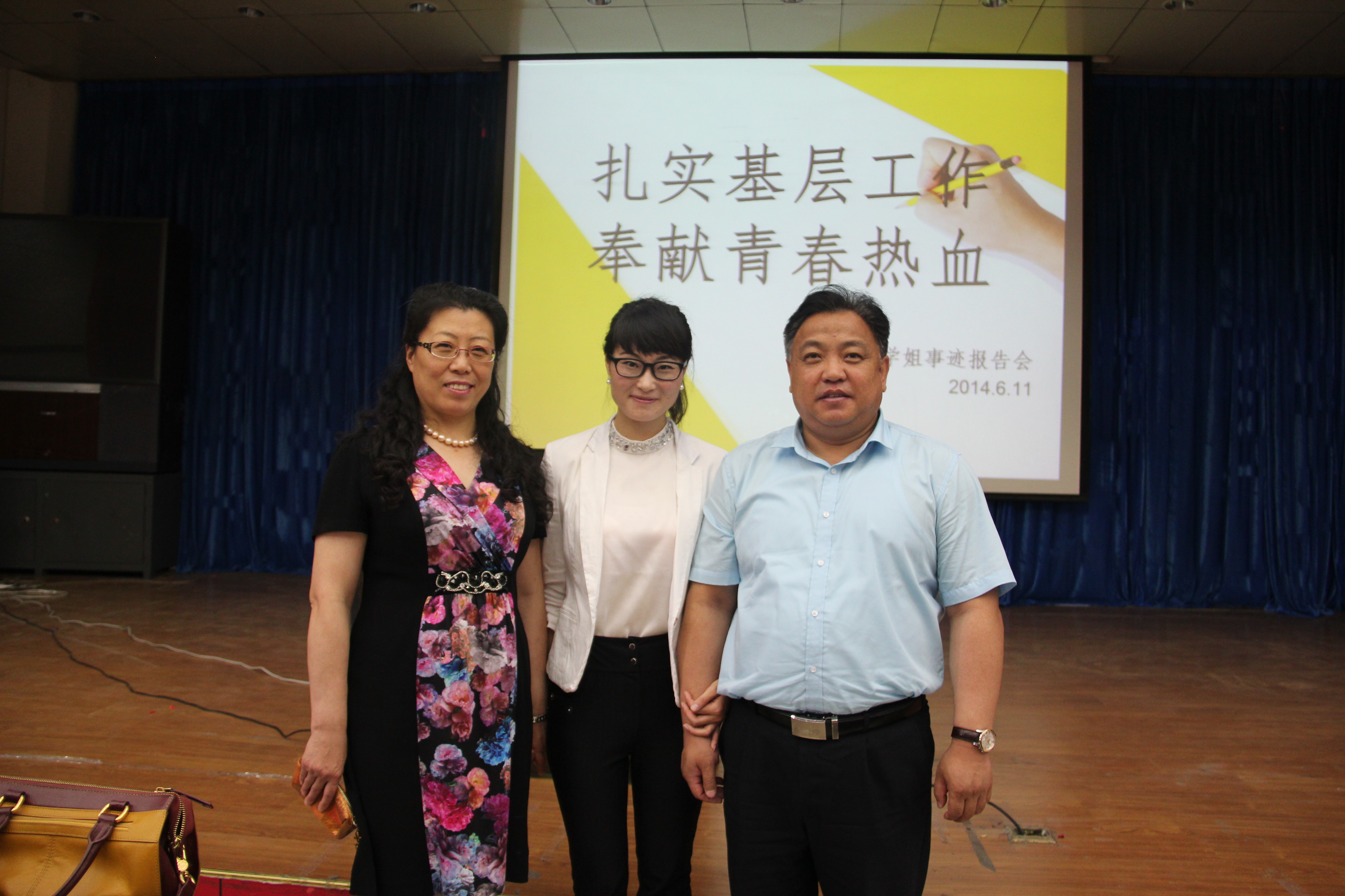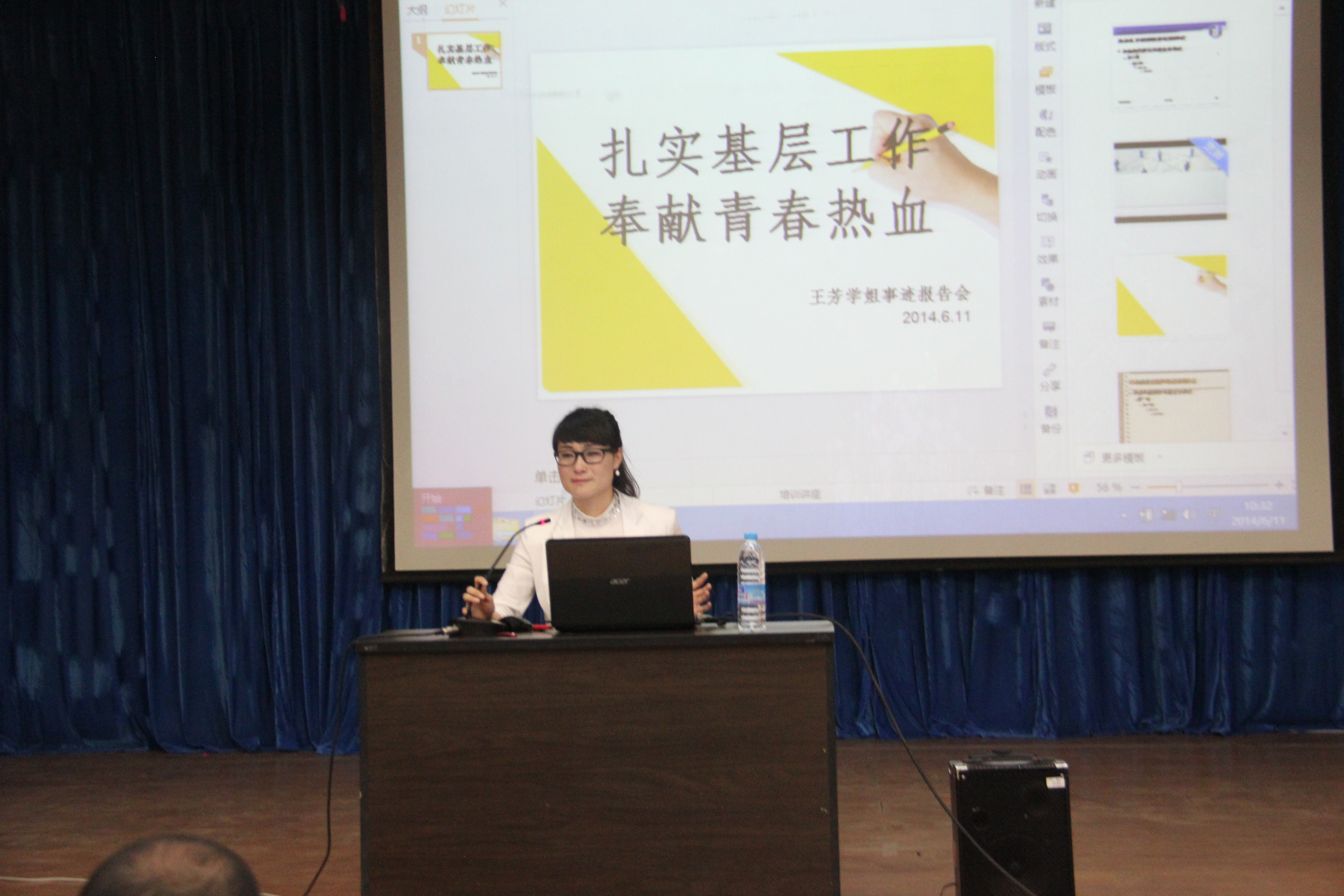 近日,Beat365官网Beat365中文官方网站邀请2010届英语专业优秀毕业生王芳回母校作事迹报告。Beat365中文官方网站的党政负责同志和师生400余人参加了本次事迹报告会。在报告中,王芳结合自身基层村官工作经历,通过生动形象的语言讲述了自己如何融入乡村管理工作,如何脚踏实地开展群众谈心谈话工作,如何坚定信念主动学习,获得英武山村群众的高度认可,全票当选为英武山村第一任女村主任的经历。她朴实生动的话语感染着在场的每一位师生,赢得了阵阵掌声。王芳在报告中讲到:“自己认准的目标,一定要坚持到底”;“自己认准的目标,一定要努力奋斗”;“ 在工作中,皮肤晒黑了,心却红了”。王芳的精彩报告为现场的师生进行了一次刻骨铭心的心灵洗礼,让我们感受到一名优秀村官一心为民,踏实工作的精神力量。参加报告会的毕业生都深受感动和鼓舞,很多同学激动地说,王芳师姐为同学们做出了榜样,我们也希望向她一样能在祖国最需要的地方建功立业,创出属于自己的辉煌人生。