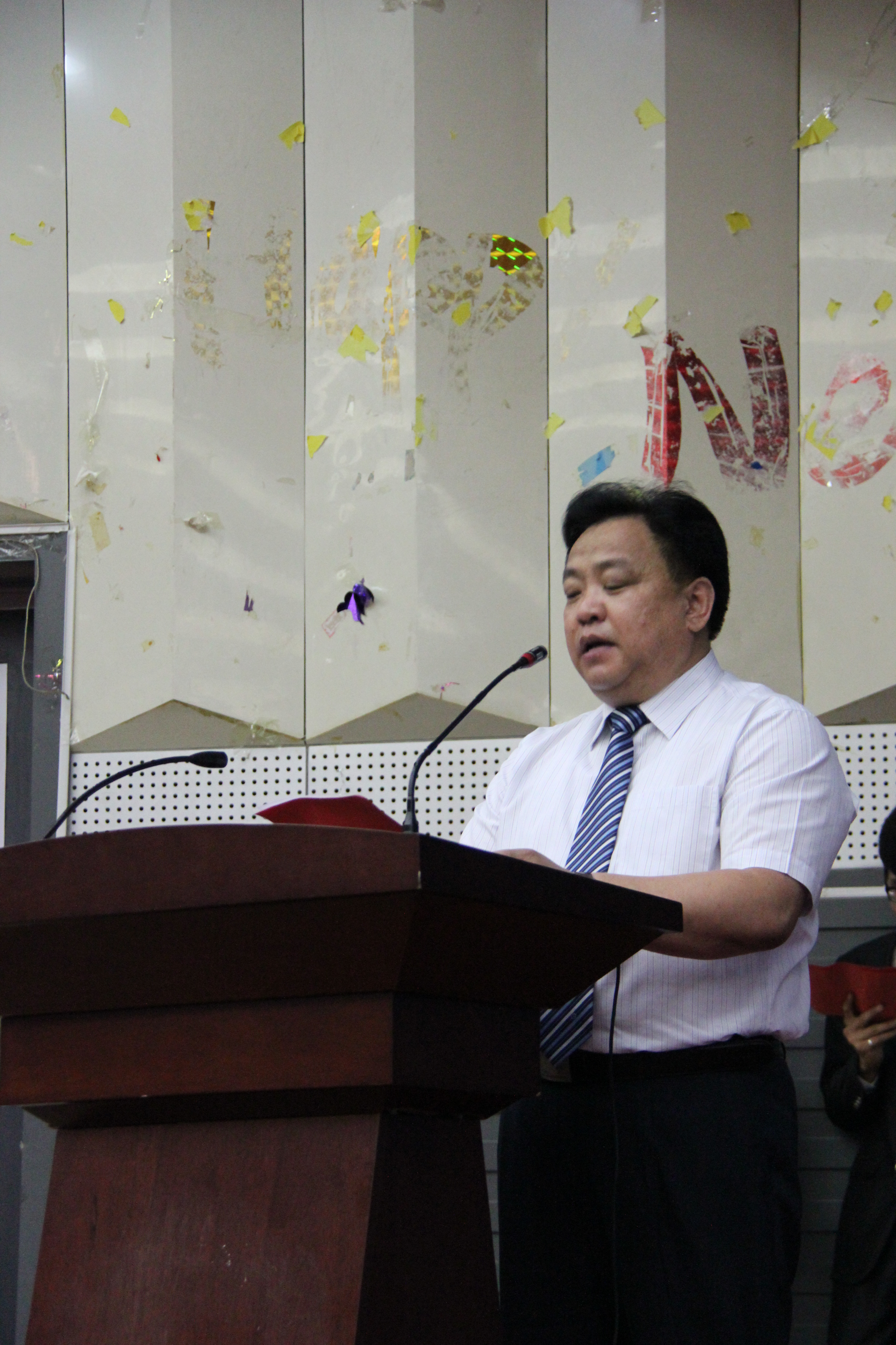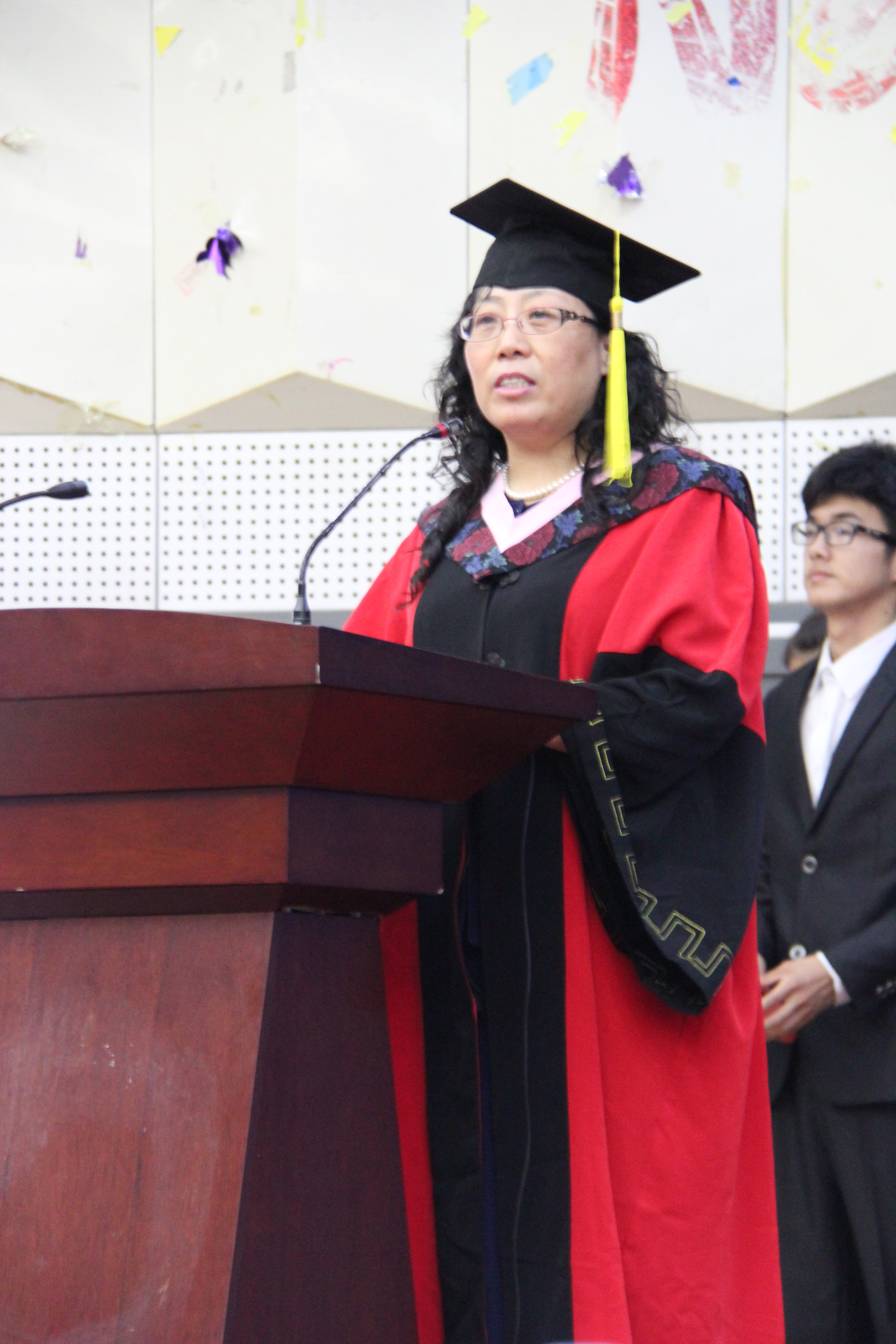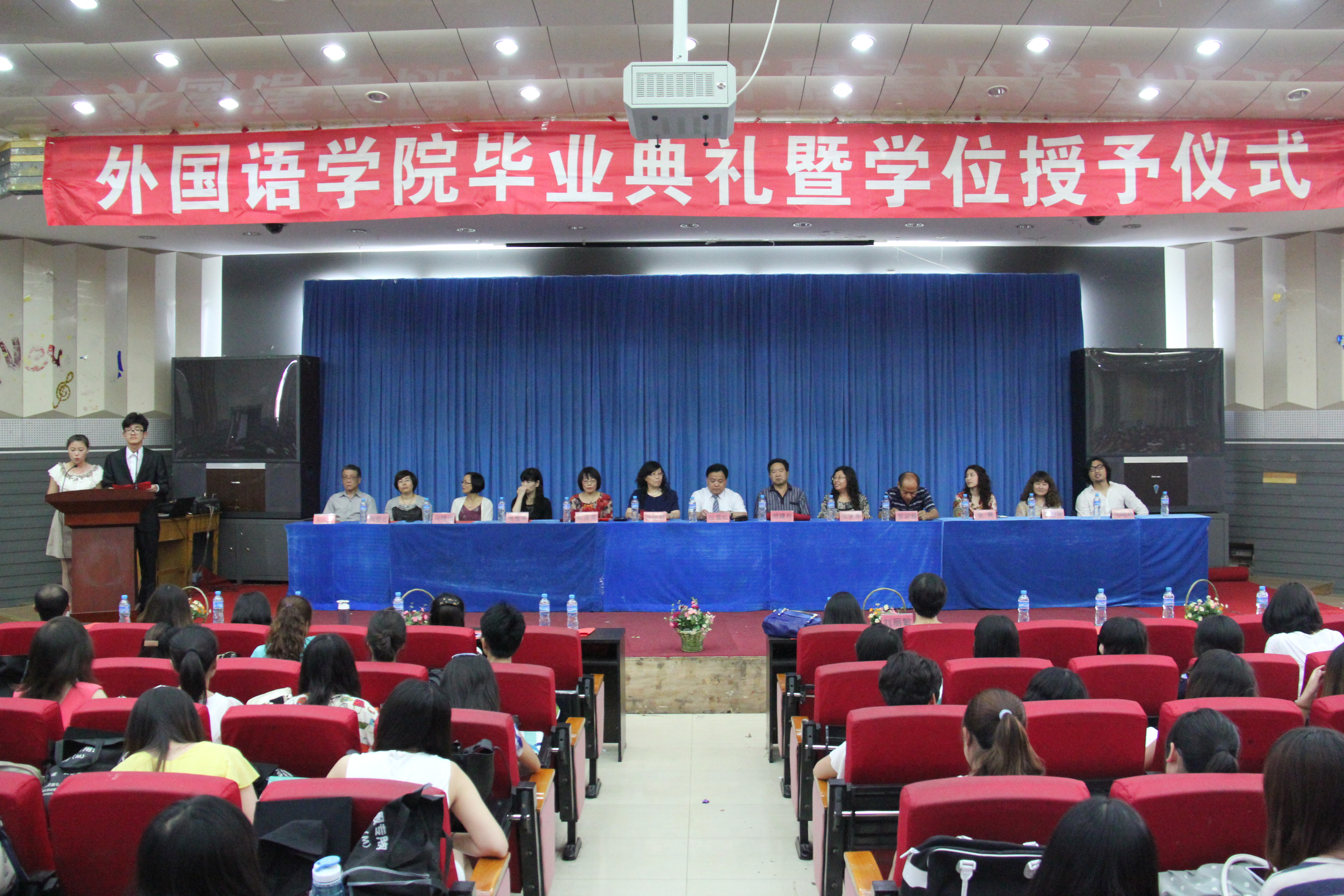 典礼上,邵丽君院长致开幕词,介绍了2013届毕业生的基本情况,并对本届毕业生中考取研究生、参加西部计划以及专接本上线情况进行了简单介绍。旅游英语教学部主任罗学峰老师代表全院教师发言,鼓励大家学无止境,终身学习。2010级旅游英语专科专业学生吴立川同学和2011级英语本科专业郝小乐同学分别代表全体毕业生和在校生发言;之后,白雪松书记在典礼上作了激情洋溢的讲话。他充分肯定了毕业生们为学院发展所作的成绩,对即将毕业的同学们提出了殷切的希望和衷心的祝福。