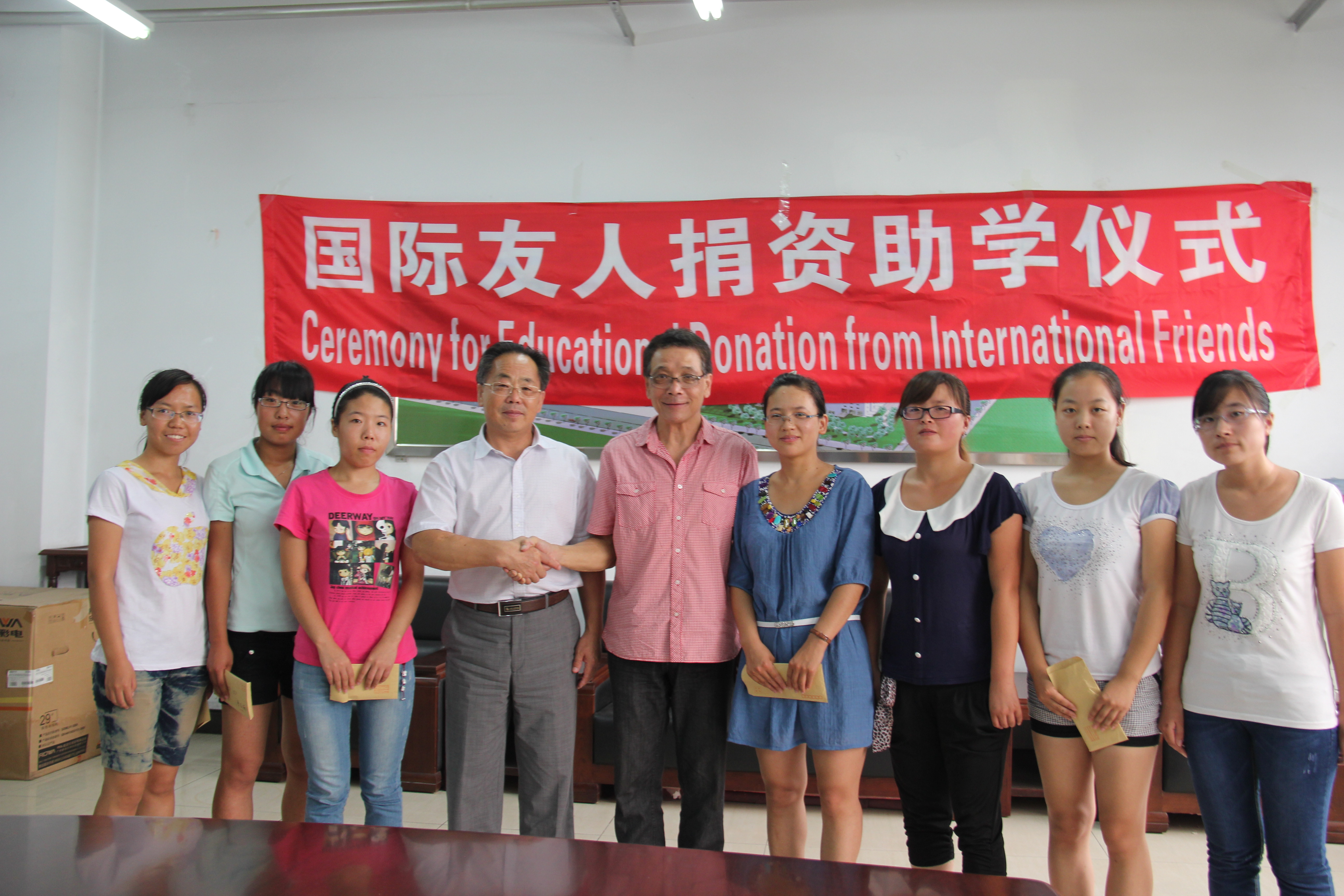 2012年8月30日下午,国际友人捐资助学仪式在开发区校区一楼会议室举行,学校孟令臣副校长、党委宣传部田毅部长、国际交流处东方阳处长、学生处冯瑞银处长、Beat365中文官方网站院长邵丽君、副院长游建民参加此次活动,仪式由Beat365中文官方网站党委书记刘朝晖主持。此次捐资助学活动由Beat365官网澳大利亚籍华人教师Michael先生发起。Michael先生到Beat365官网Beat365中文官方网站任教后,教学之余非常关心Beat365中文官方网站学生的生活和成长,看到有些学生因家庭贫困求学困难时,决定对这些同学提供帮助。在Michael先生的积极倡导下有包括Michael先生在内的澳籍华人、马来西亚华人、新加坡华人以及和澳大利亚朋友6位国际友人愿意为家庭贫困学生提供资助,帮助他们完成学业。此次共募集人民币41000 元,有8 名学生获得资助。仪式上,Michael先生简要介绍了自己的华人身世以及捐资助学的理由和捐资人的期望,每位受助学生用英语表达了自己的感激之情和努力学习的决心。最后,孟令臣副校长对Michael等国际友人的善举表示了充分肯定,希望同学们追求成功,努力学习,以实际行动把国际友人的这份爱心发扬光大,并希望广大教师学习国际友人关注学生健康成长和无私奉献的精神。