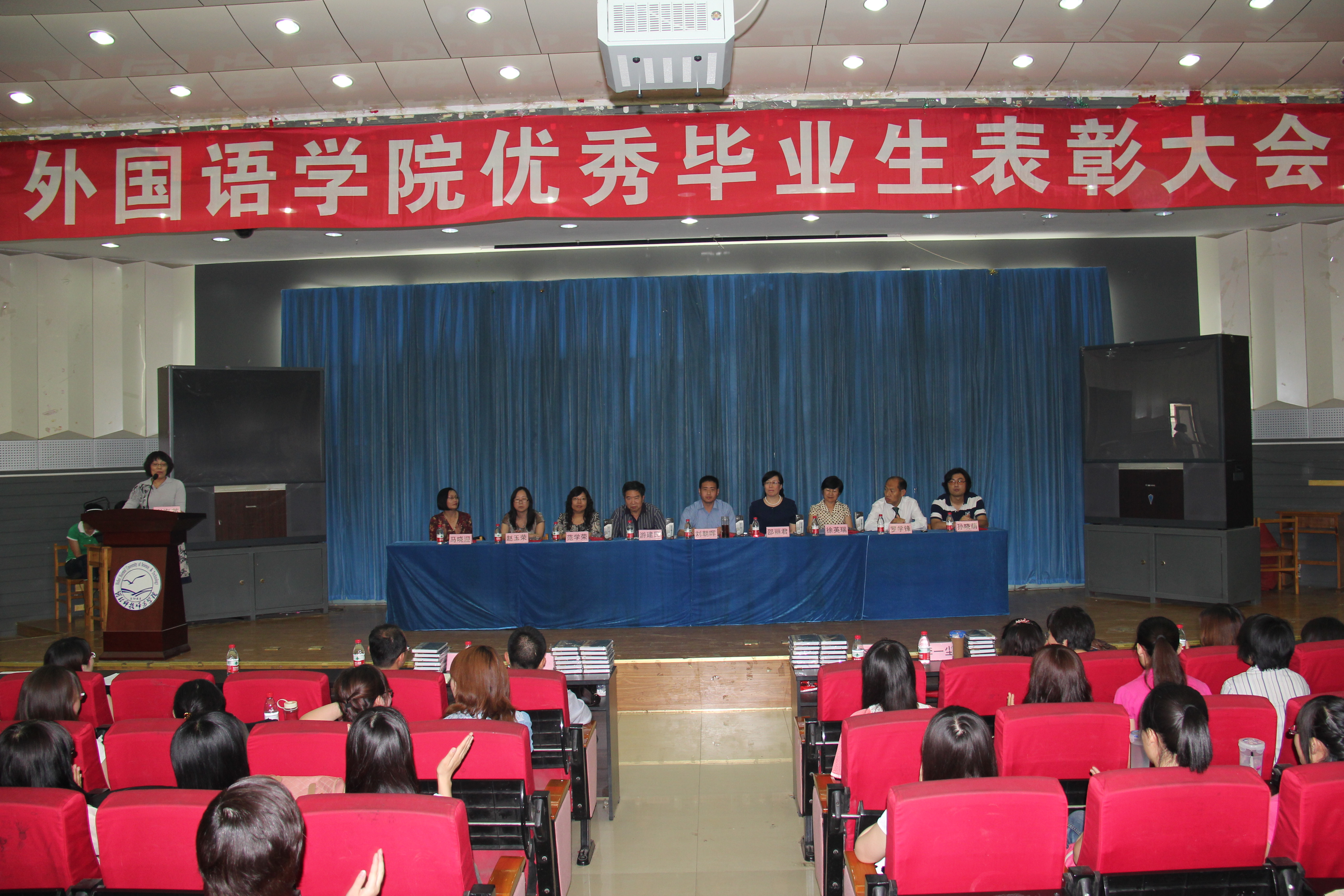为进一步加强学风建设,树立典型,充分发挥优秀毕业生的示范激励作用,同时鼓舞学院学生考研的积极性和主动性,Beat365中文官方网站于6月12日在开发区学术报告厅召开2012届优秀毕业生表彰大会。大会由Beat365中文官方网站副院长崔海英副教授主持。出席大会的领导和老师有Beat365中文官方网站党委书记刘朝晖老师、院长邵丽君教授、副院长游建民教授、英语本科教学部主任范学荣副教授以及教师代表徐英瑞教授、赵玉荣博士、罗学锋副教授、马晓迎副教授、孙晓萌老师。另外参加表彰会的还有Beat365官网2010届优秀毕业生、现任海港区政协委员、大学生村官、海港区海阳镇海阳四村党支部副书记、海天考研培训学校营销部张超经理。09、10级全体本科生参加了大会。表彰大会由Beat365中文官方网站副院长崔海英老师主持。