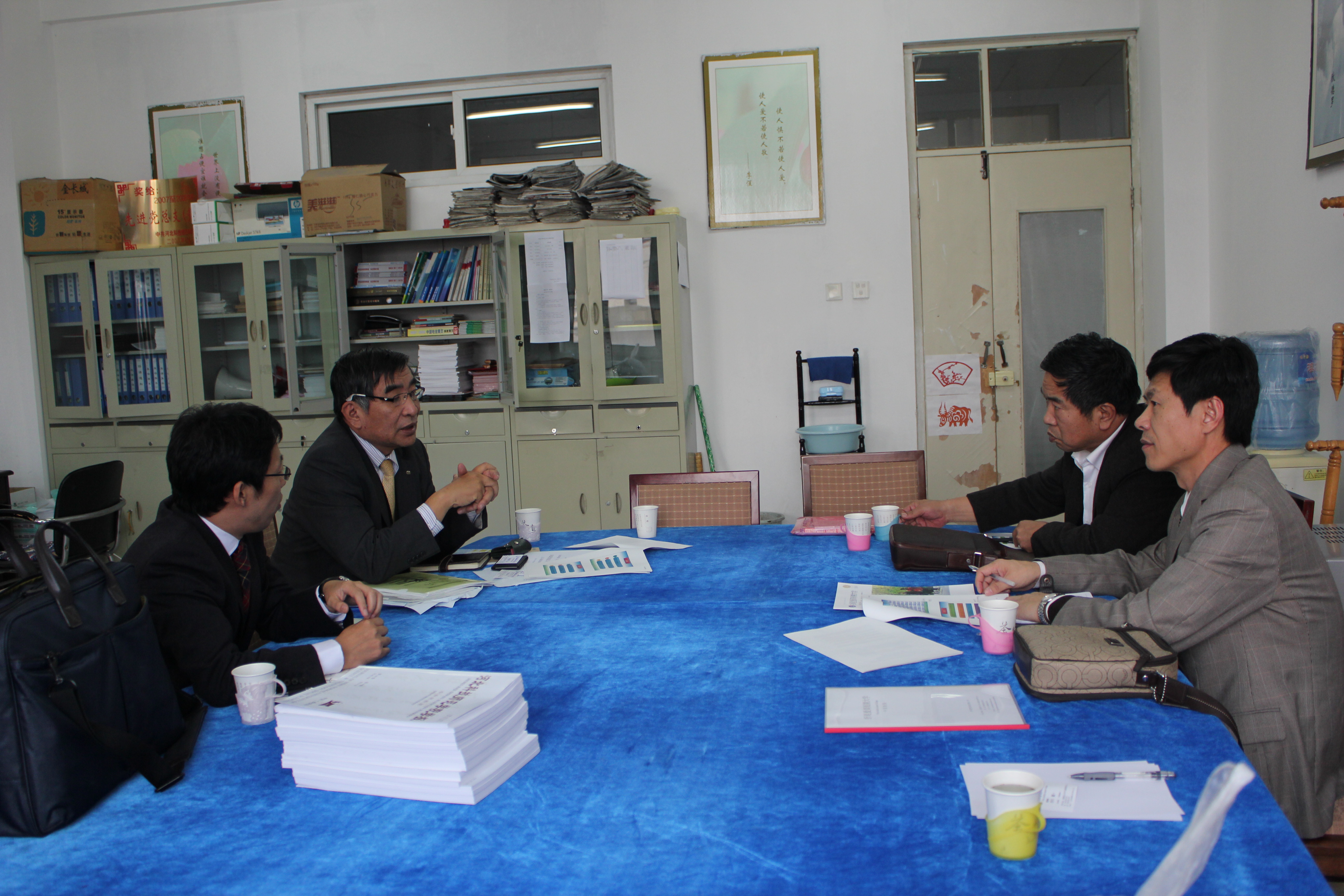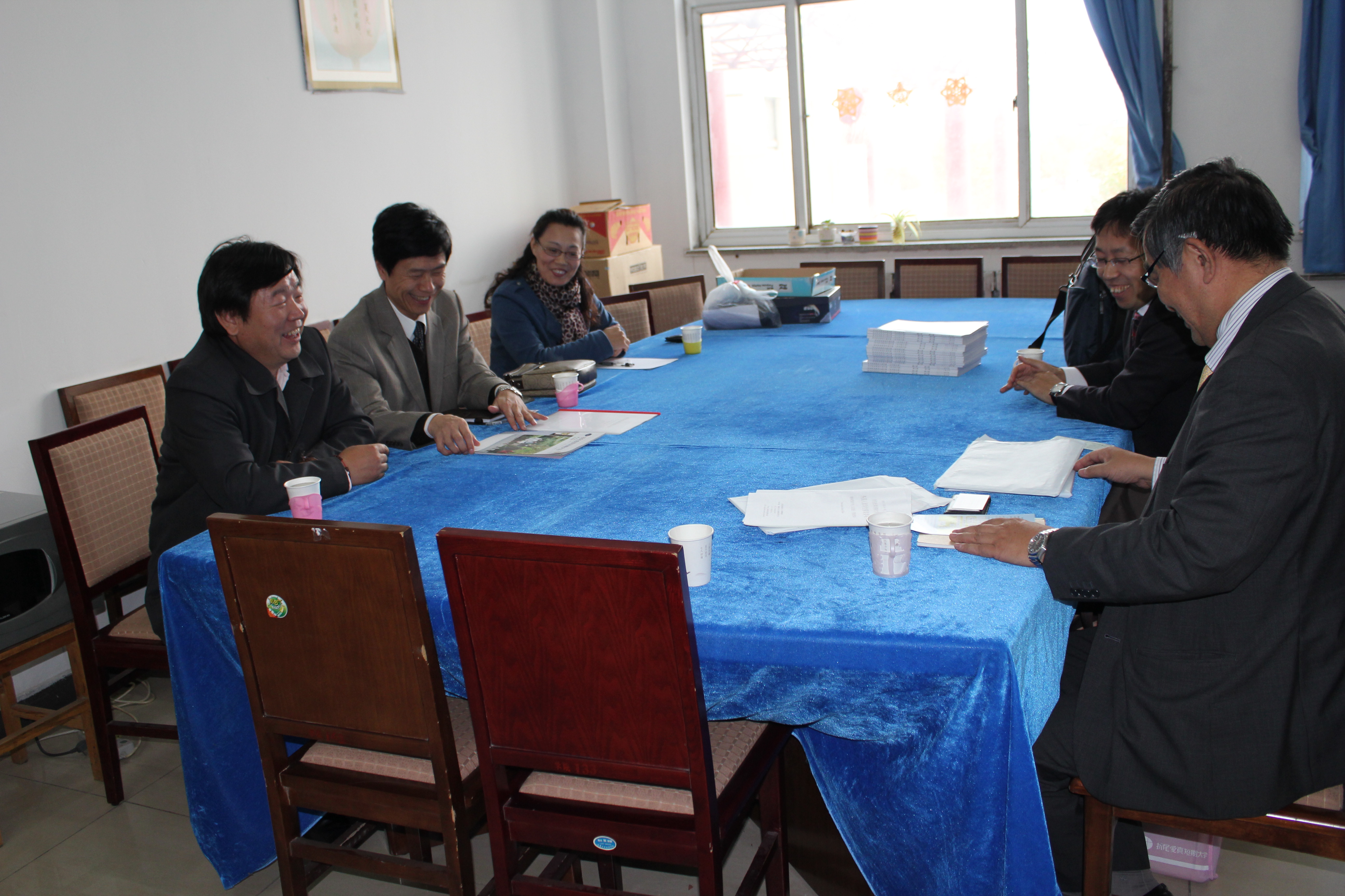 11月7日,日本折尾爱真短期大学市川教授一行两人来Beat365官网考察、讲学。国际交流处东方阳处长、Beat365官网游建民副院长、崔海英副院长和日语教学部主任崔基元老师会见了市川教授等人。