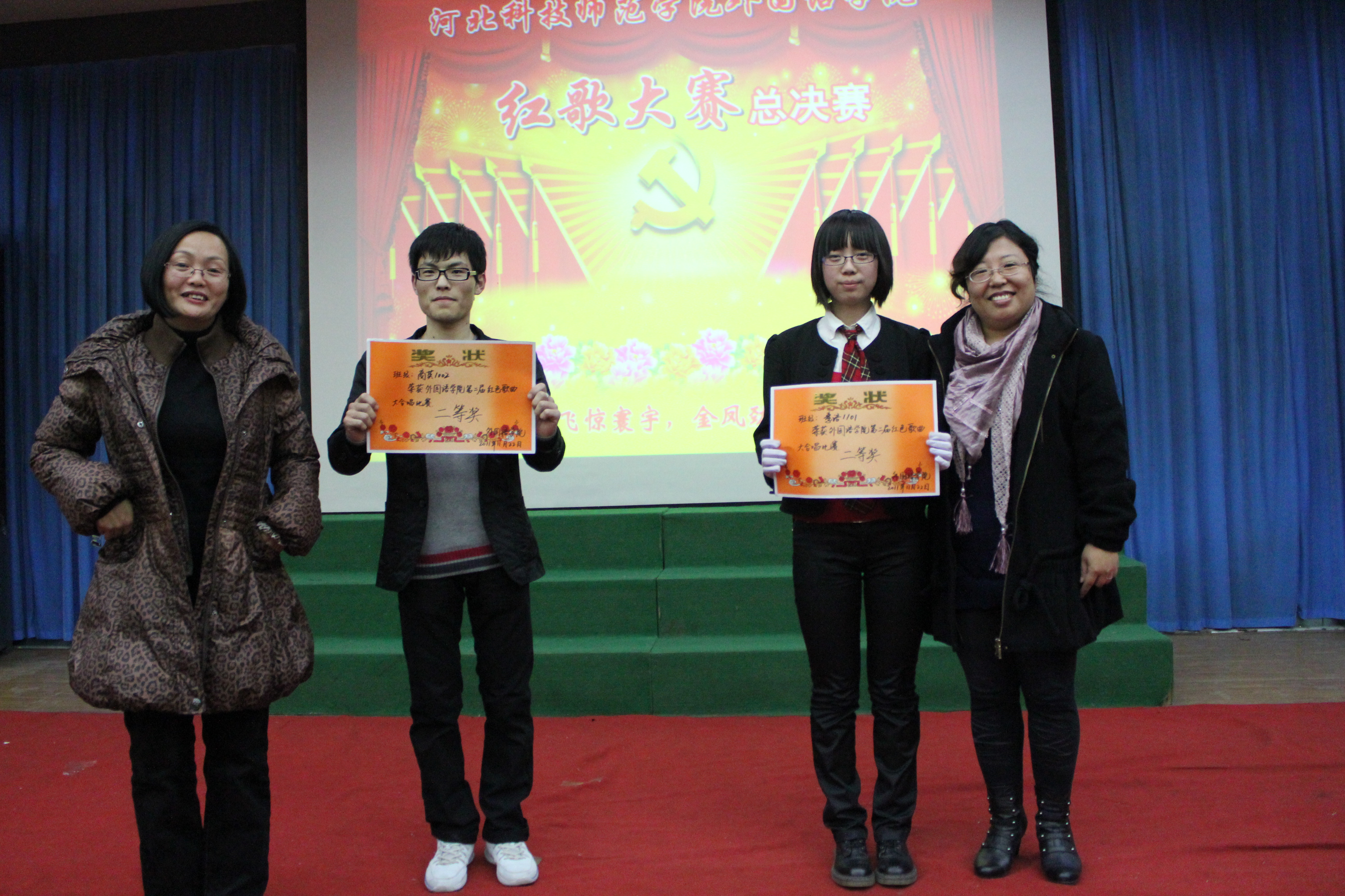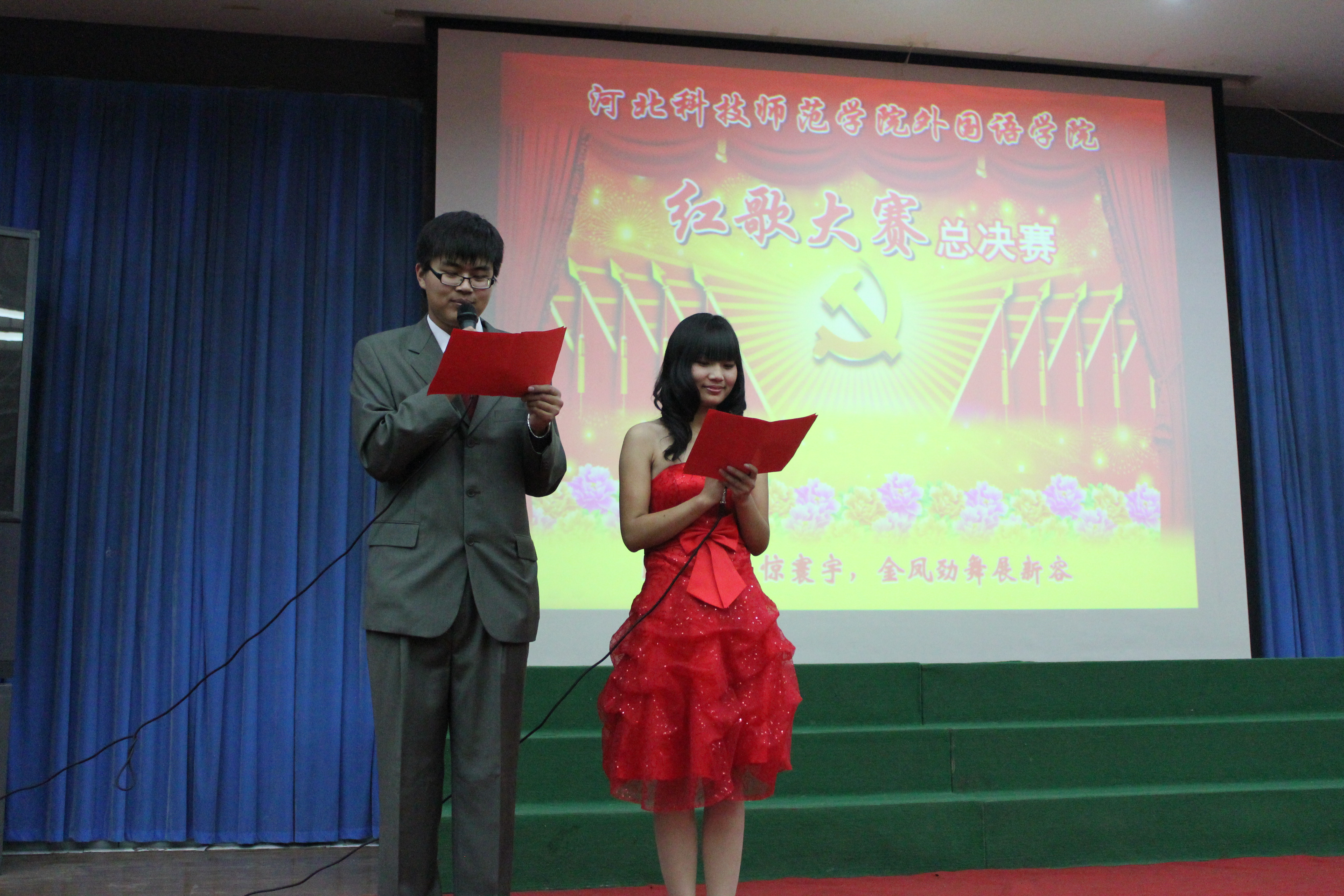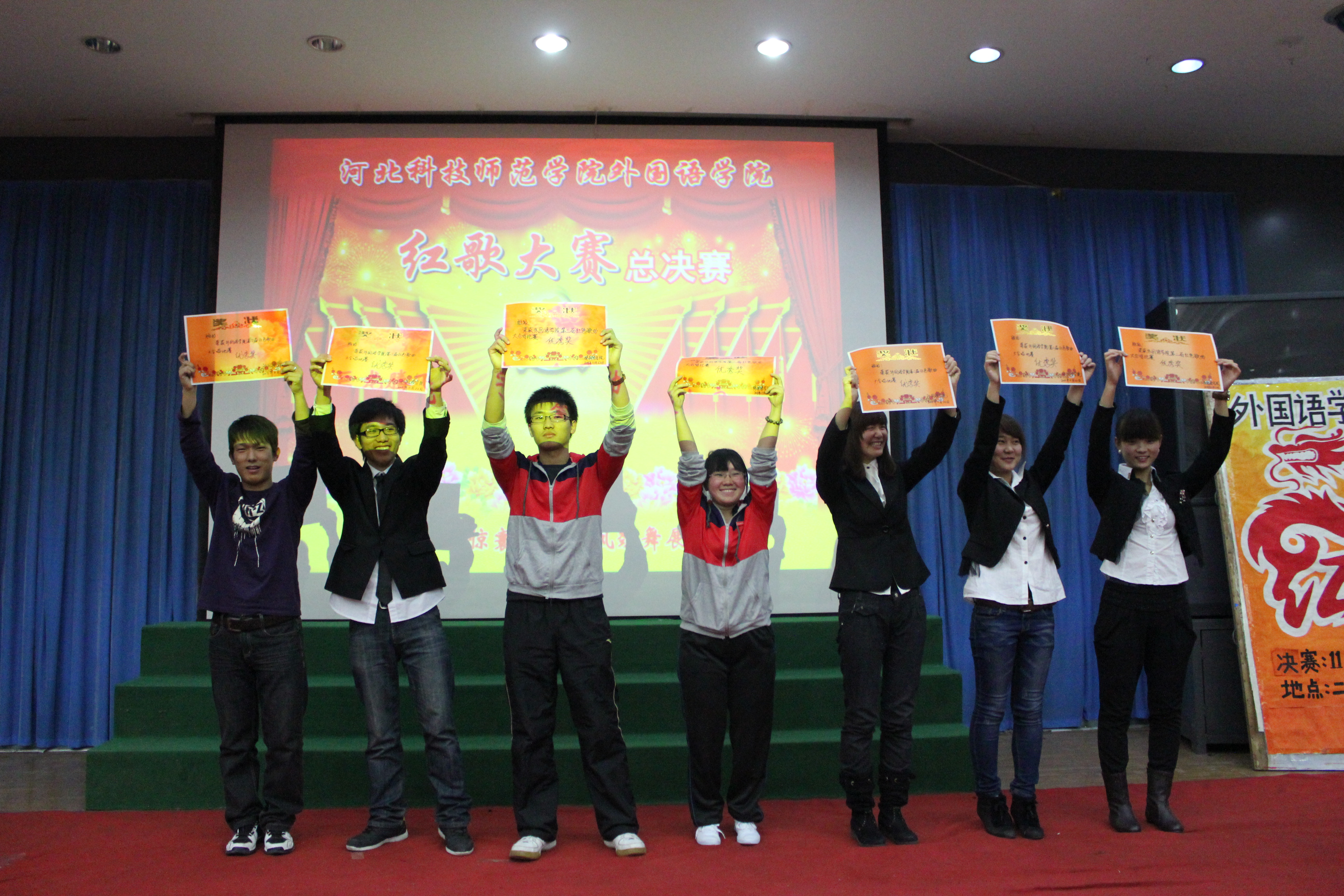 比赛在观看国庆大阅兵的庄严氛围中隆重开幕。参加比赛的班级为师生们带来了一场别开声面的视听盛会,比赛中学生们激情饱满,活力四射。旋律优美动人心弦,歌声嘹亮铿锵有力。《红色娘子军》、《国家》等一首首耳熟能详的红色歌曲唱出了同学们敢为人先,争创一流的时代风采,激起了大家对党对祖国的无限热情。手语、朗诵、武术、歌曲串烧、短话剧等多种多样的形式把比赛一次次推向高潮,台下不时爆发出热烈的掌声和激情的呐喊声。经过激烈的角逐,英本1001班最终以总分第一的成绩荣获桂冠,旅游英语1002班及英本1002班获得季军。