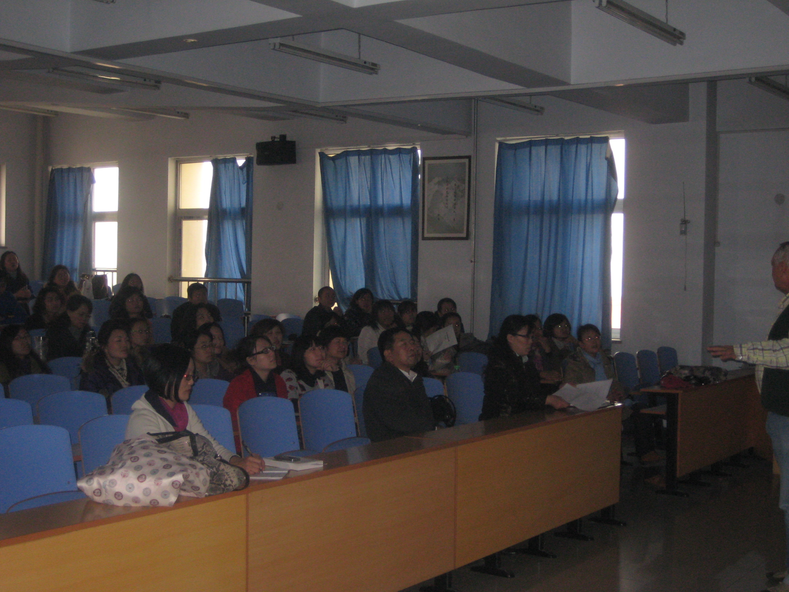 12月16日,Troy大学教授Freeman为Beat365中文官方网站教师奉献了一堂生动的讲座。出席本次讲座的主要是Beat365中文官方网站教授英语的教师们。Freeman教授就关于如何提高学生的课堂积极性,如何让学生更主动的参与到课堂教学方面的问题为大家做了详细的阐述和演示。通过一系列的课件和数据分析,让在座的教师们明白了学生积极参与对课堂教学的重要。各位教师和Freeman教授进行了良好的互动交流,纷纷表示受益匪浅。