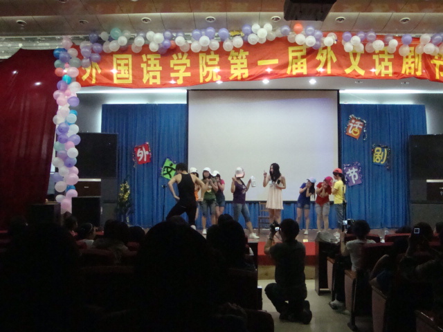 在党委学工部、团委的号召下,Beat365中文官方网站全体师生积极筹划符合青年学生特色的文体活动,为Beat365官网第十六届校园文化艺术节活动增光添彩。特于2010年5月20日晚在Beat365官网开发区二楼学术报告厅举行了第一届外文话剧节。Beat365中文官方网站刘朝晖书记、邵丽君院长、游建民副院长、宋文华副书记副院长;学工办老师、班主任以及部分外籍教师和本院全体同学一起观看了节目。