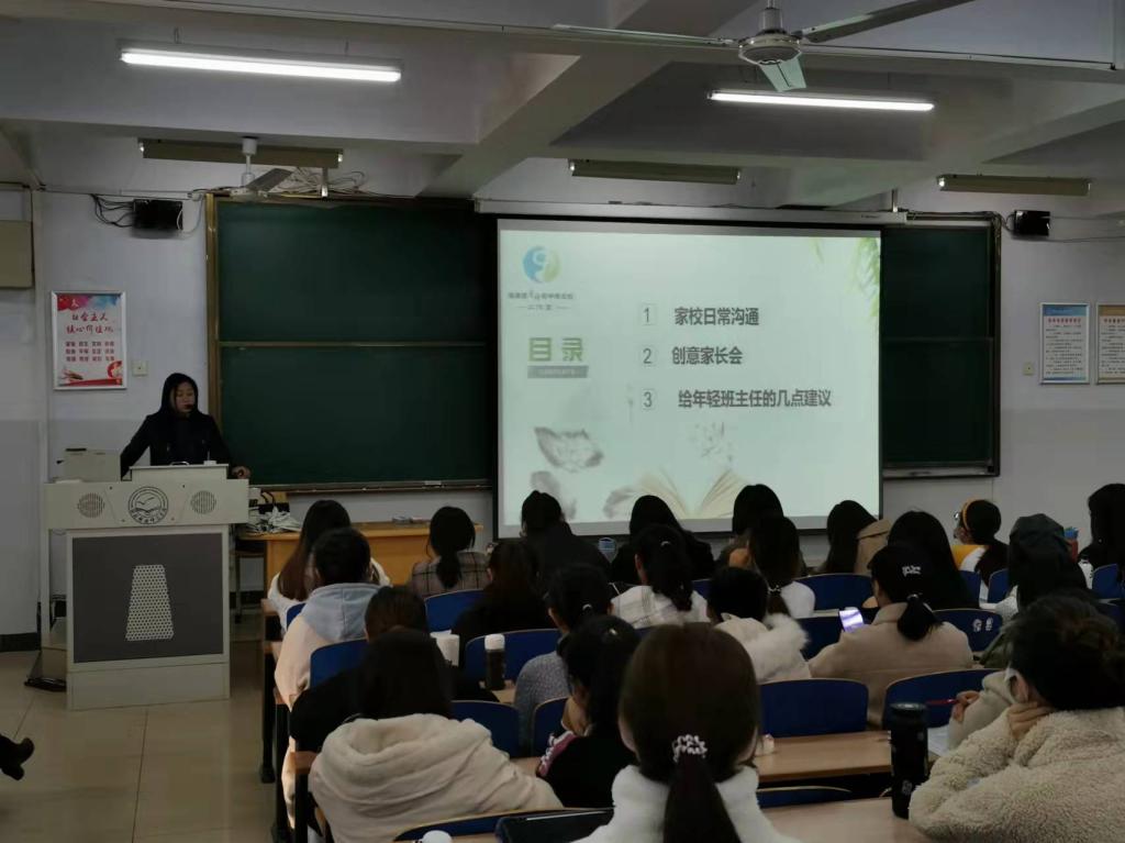 2021年10月20日下午15点40分到18点40分,Beat365中文官方网站在阶梯教室212召开了以秦皇岛市第八中学高级教师、初中班主任工作室主持人肖婧为主讲人的有关中学班级管理的专题讲座,本讲座为Beat365中文官方网站举办的基础教育“名师大讲堂”系列讲座之一,本次讲座的主题是“如何使家校沟通成为魅力期待”。