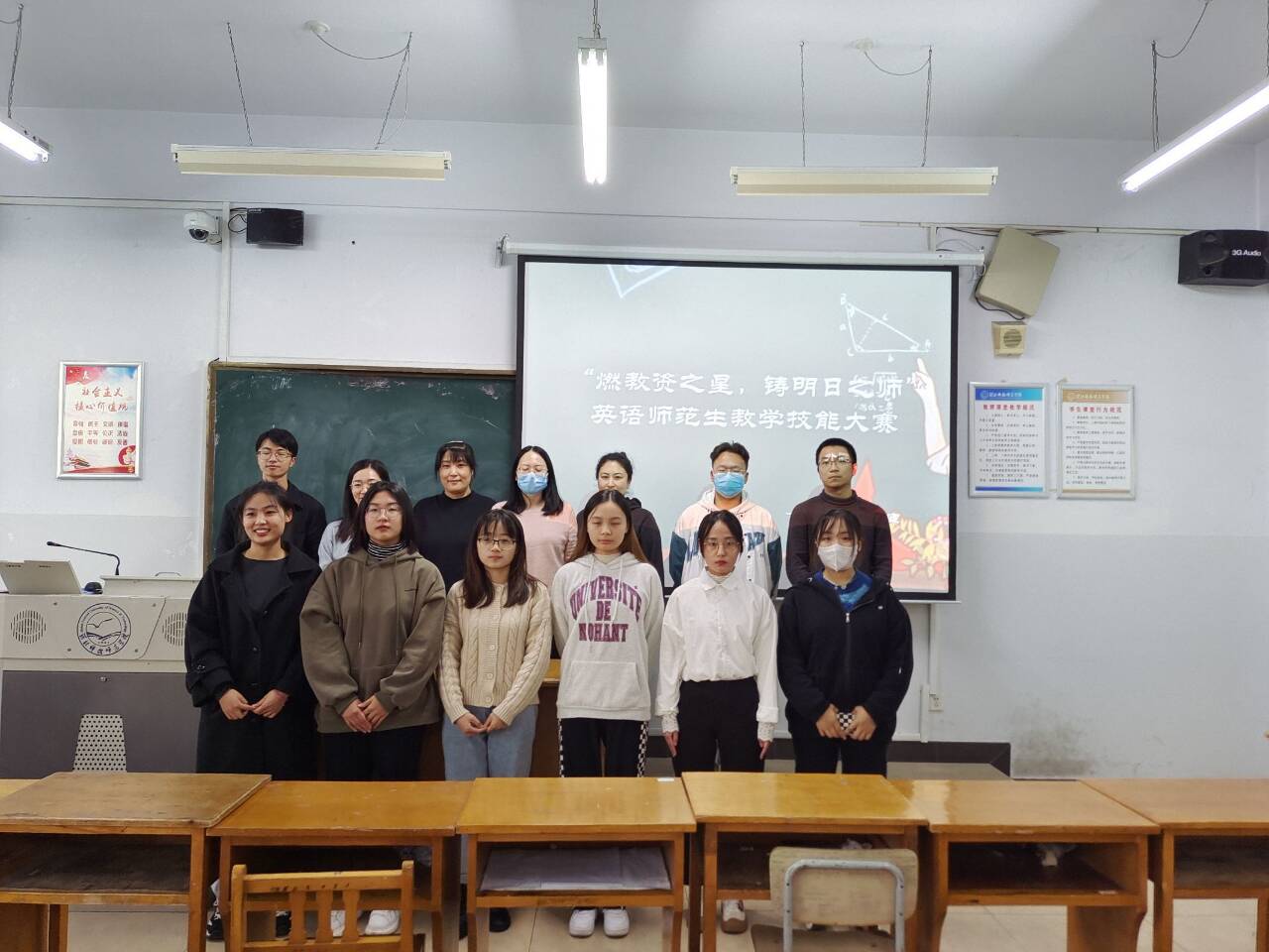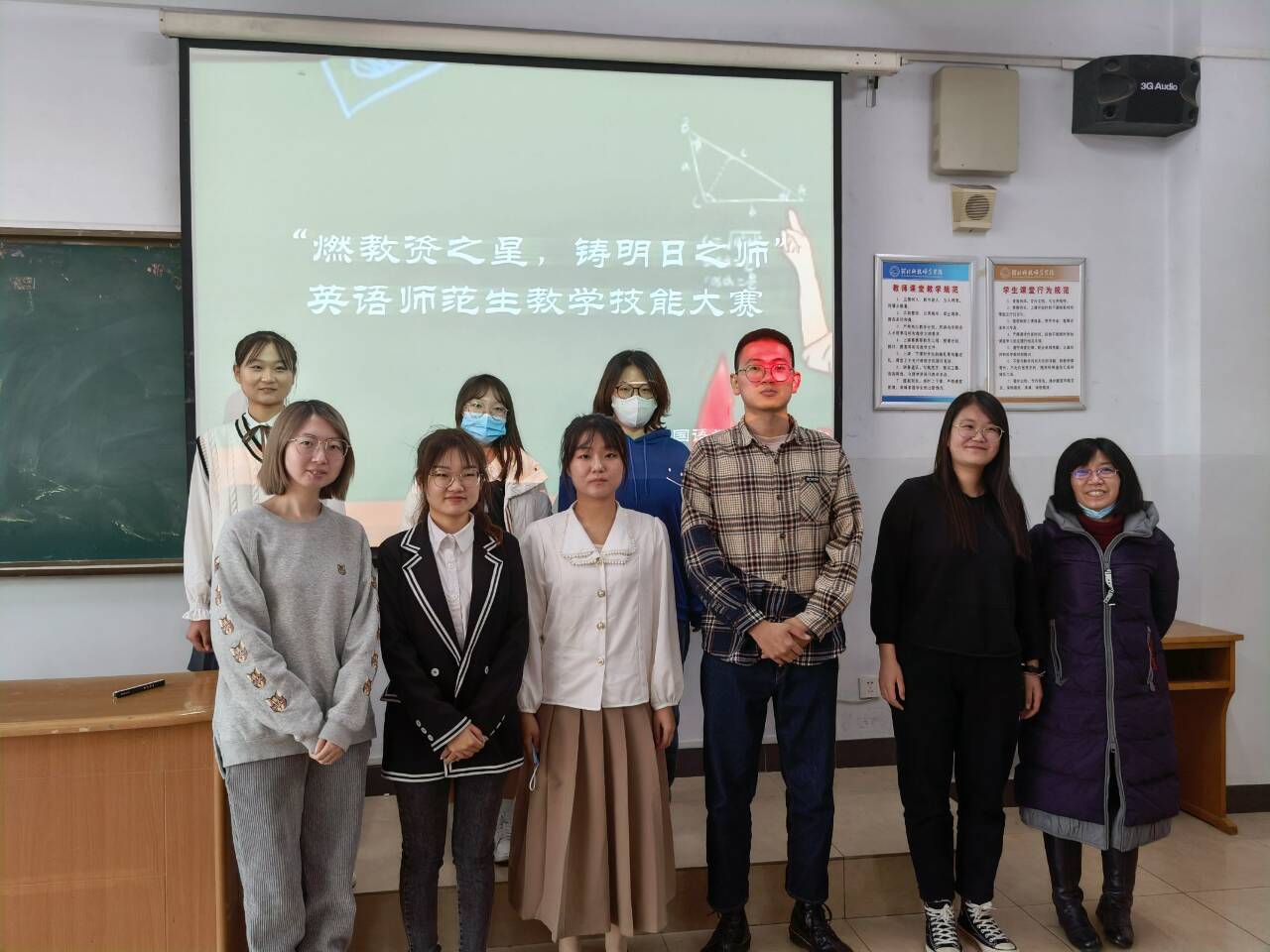 为提高Beat365中文官方网站英语专业师范生核心竞争力,为她们提供一个展示自我、锻炼自我的平台,11月11日,Beat365官网在综合楼606和608教室举办了“燃教资之星,铸明日之师”英语师范生教学技能大赛。18名选手、7位评委老师(王静、宋洁、薛浩涵、刘丽敏、李爽、付蕊、刘玲玲)参与了此次活动,院学生会协同安排了赛场事宜。