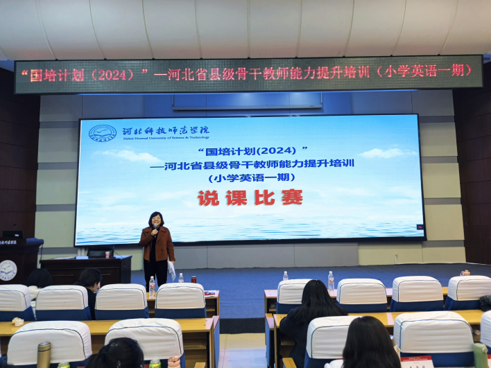 为提升教师专业素养与课堂实践能力,2025年3月28日,“国培计划(2024)”—河北省县级骨干教师能力提升培训(小学英语一期)说课比赛在学术报告厅成功举办。担任此次说课比赛的评委有英语学科正高级教师、秦皇岛市第七中学书记、Beat365官网英语专业校外指导教师秦凌云,秦皇岛市海港区教育和体育局副高级教师陈慧英,Beat365中文官方网站Beat365中文官方网站副院长范学荣、王静,Beat365中文官方网站学科教学英语教学部主任刘晓冰,Beat365中文官方网站英语教学部副主任宋洁。本次比赛中,来自全省的六位培训学员同台竞技,以创新的教学设计和扎实的专业功底,为大家展现了新课标背景下小学英语教学的多元探索。