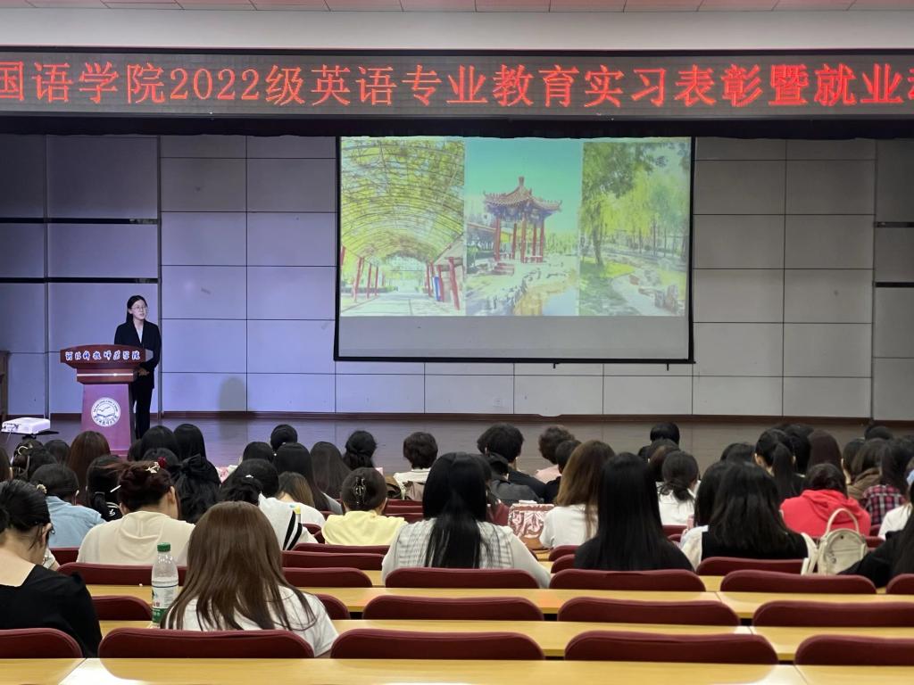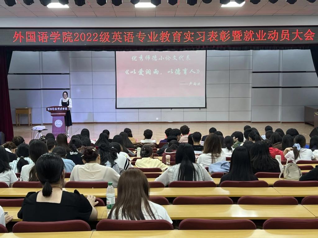 2025年9月25日,Beat365中文官方网站英语专业教育实习表彰暨就业动员大会在多功能厅圆满召开,该专业2022级全体同学以及部分2023级学生参加了大会。此次大会全面回顾了上个学期的教育实习成果,表彰了在实习期间表现优异的同学,为师生提供了分享经验、交流心得的平台,并对大家今后的就业指明了方向,进一步推动了师范生培养质量的提升。