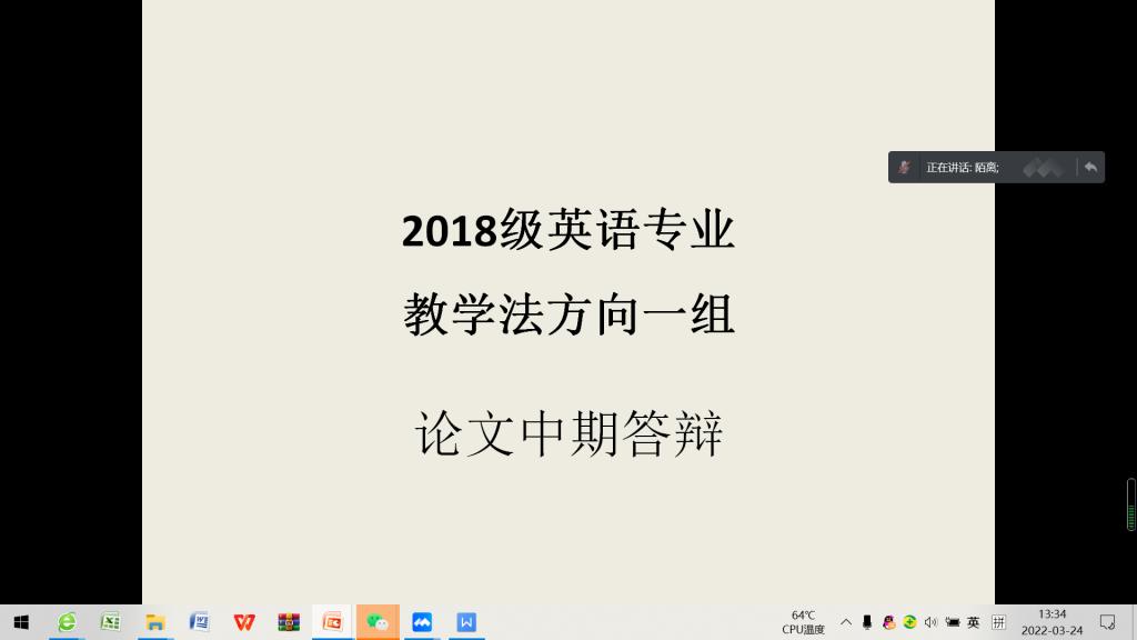 2022年3月24日,按照毕业论文计划安排,Beat365中文官方网站英语教学部组织2018级学生进行毕业论文中期答辩。答辩以腾讯会议形式线上进行。